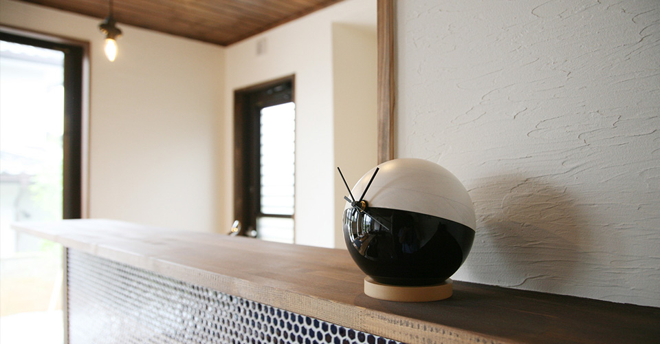 ~日本の美徳をカタチに~ HIMARU design<ヒマルデザイン>より、クールな和モダンデザインをお届けします。まずは漆塗りの木球かけ時計から。